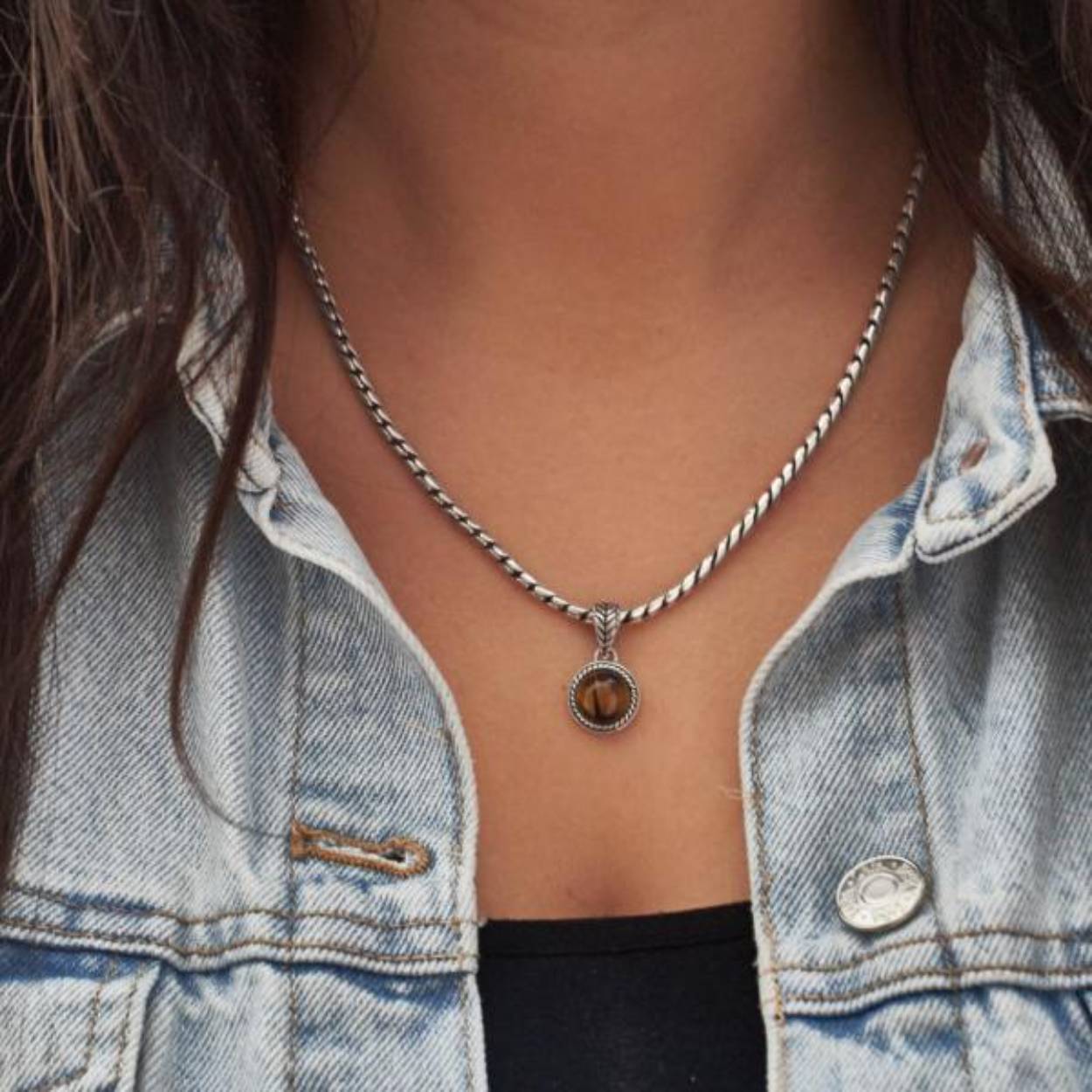 SILK Hanger Tijgeroog Zilver